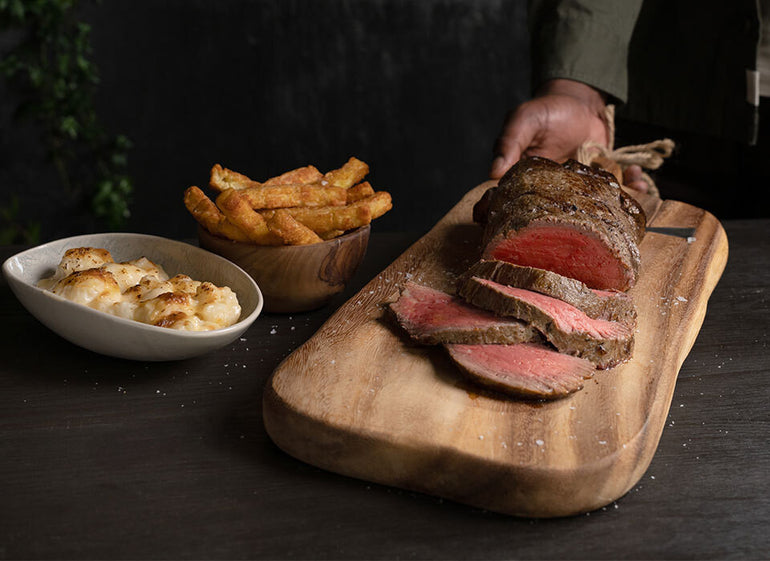 Grass-fed British beef fillet matured for up to 28 days and mushroom duxelles in a puff pastry. Enjoy richly tender beef fillet surrounded by a generous layer of earthy mushrooms. All hand-rolled in our Aberdeenshire butchery with a decorated puff pastry for a luxurious and attractive Easter centrepiece.